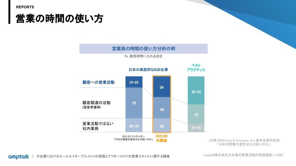 2021年2月にMcKinsey & Company, Incが発表したレポート「日本の営業生産性はなぜ低いのか」でも日本企業の営業員の顧客への営業活動の低さが指摘されています。