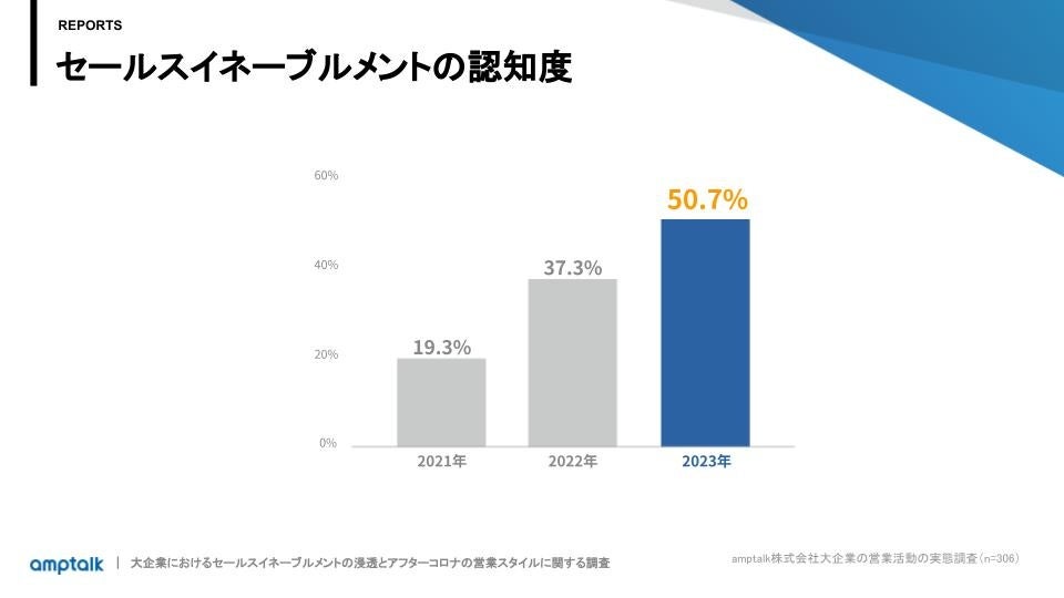 セールスイネーブルメントの認知はここ3年で急激に伸びており、2023年において50%を超えました。