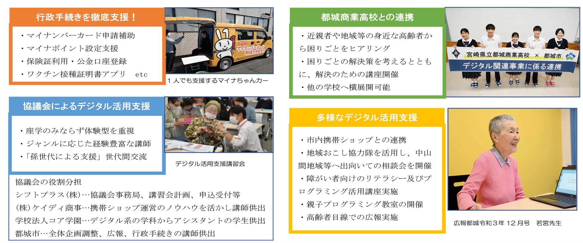 ■シフトプラス(株)、学校法人コア学園、(株)ケイディ商事、都城市で協議会を設立、学生をアシスタントとして活用し「孫世代による支援」!