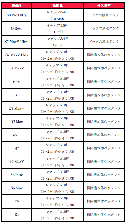 Q7 Max+ | キャップ1/10杯 (1~2ml 約小さじ1/3) | 掃除機本体の水タンク |