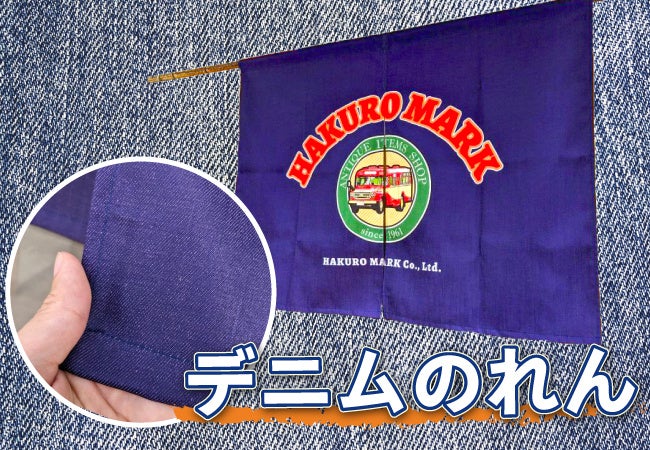 国産デニムの産地として有名な広島県福山市のメーカーとコラボしたデニム生地とデジタル捺染の技術を使用。ロゴマークや写真を入れたオリジナル店頭のれんがデニム生地で製作できる。