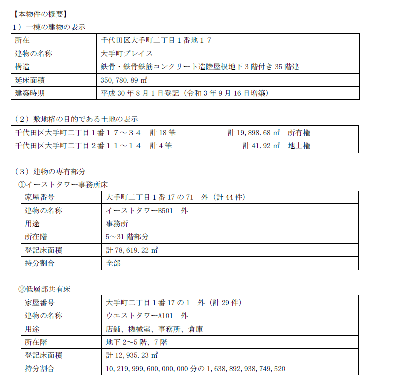 当社の100%子会社であるエムエル・エステート株式会社は、2022 年9月9日に実施された「大手町二丁目所在 区分所有建物『大手町プレイス』売却に係る入札」において落札者となったトーセイ・アセット・アドバイザーズ株式会社が組成する予定であるファンドへの出資を検討していることをお知らせします。