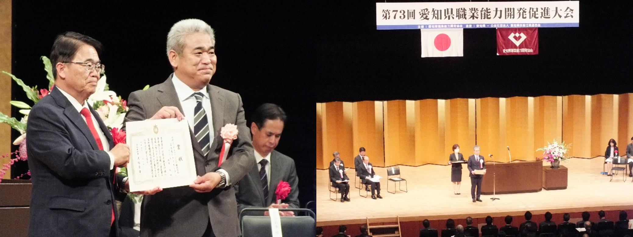 愛知県知事から認定職業訓練実施優良事業者で表彰