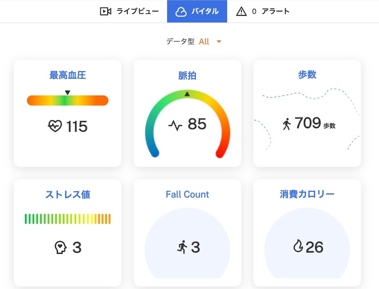 第2弾の実証テストで脈拍や血圧、ストレス値、運動量などが収集できる「ID-Watchy(R)」とキートスの保育室に設置している「見守りカメラ」※の映像データを照らし合わせることで、まだ言葉をうまく話すことができない子どもや、保育士のストレスや異変が可視化され、身体の不調や事故の防止の可能性を感じ導入を決定しました。