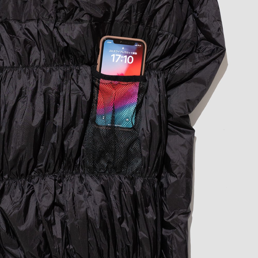 また20D(デニール)のリップストップナイロン採用しストレッチ縫製とボックスキルト構造で仕上げることで、耐久性だけでなく伸縮による快適性と保温性能を高レベルで実現。しかも開閉時の生地噛みを防ぐ専用ファスナーや外気の侵入を軽減する首回りやジッパー内側のドラフトチューブを備えるなど、本格的な仕様がてんこ盛り。キャンプ用としてはオーバースペックですが、敢えてキャンプ専用としてお使い下さい。※ご自宅での保管でダウンをフワフワに保つメッシュの保存袋も付属しています。