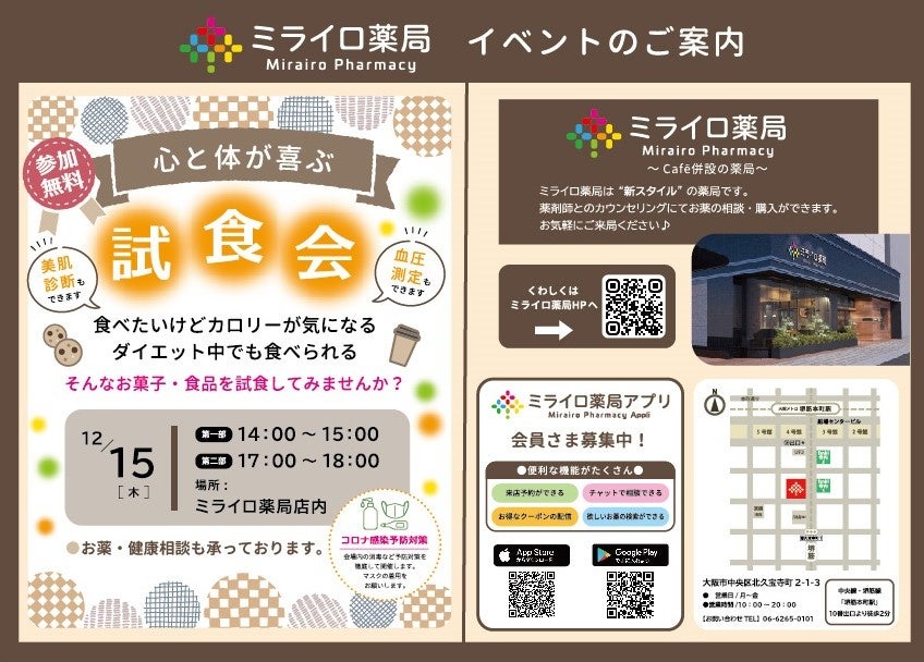 12月15日 "ミライロ薬局”「心と体が喜ぶスイーツ試食会」を開催します!