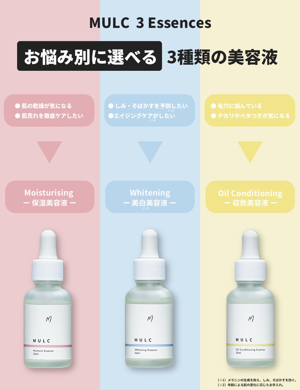 株式会社アルファブル(本社:東京都新宿区、代表取締役:香美惇 以下「アルファブル」)は、運営するメンズコスメブランド「MULC(ムルク)」のスキンケアシリーズ第6弾として新たに、肌悩みで選べる3種類の美容液「モイスチャーエッセンス」、「ホワイトニングエッセンス」、「オイルコンディショニングエッセンス」の3商品を9月5日(月)より発売いたします。