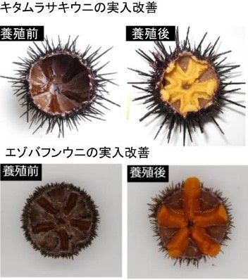 北三陸ファクトリーでは、海の砂漠化「磯焼け」を防ぐために駆除・廃棄されていた実入りの悪いウニを採捕し、ウニ用生簀へ収容、短期間の給餌により、実入り、色、品質を大幅に改善し、天然ウニと遜色のない美味しさの実現に成功しました。これにより、本来ウニが流通しない秋冬にも出荷が可能となります。