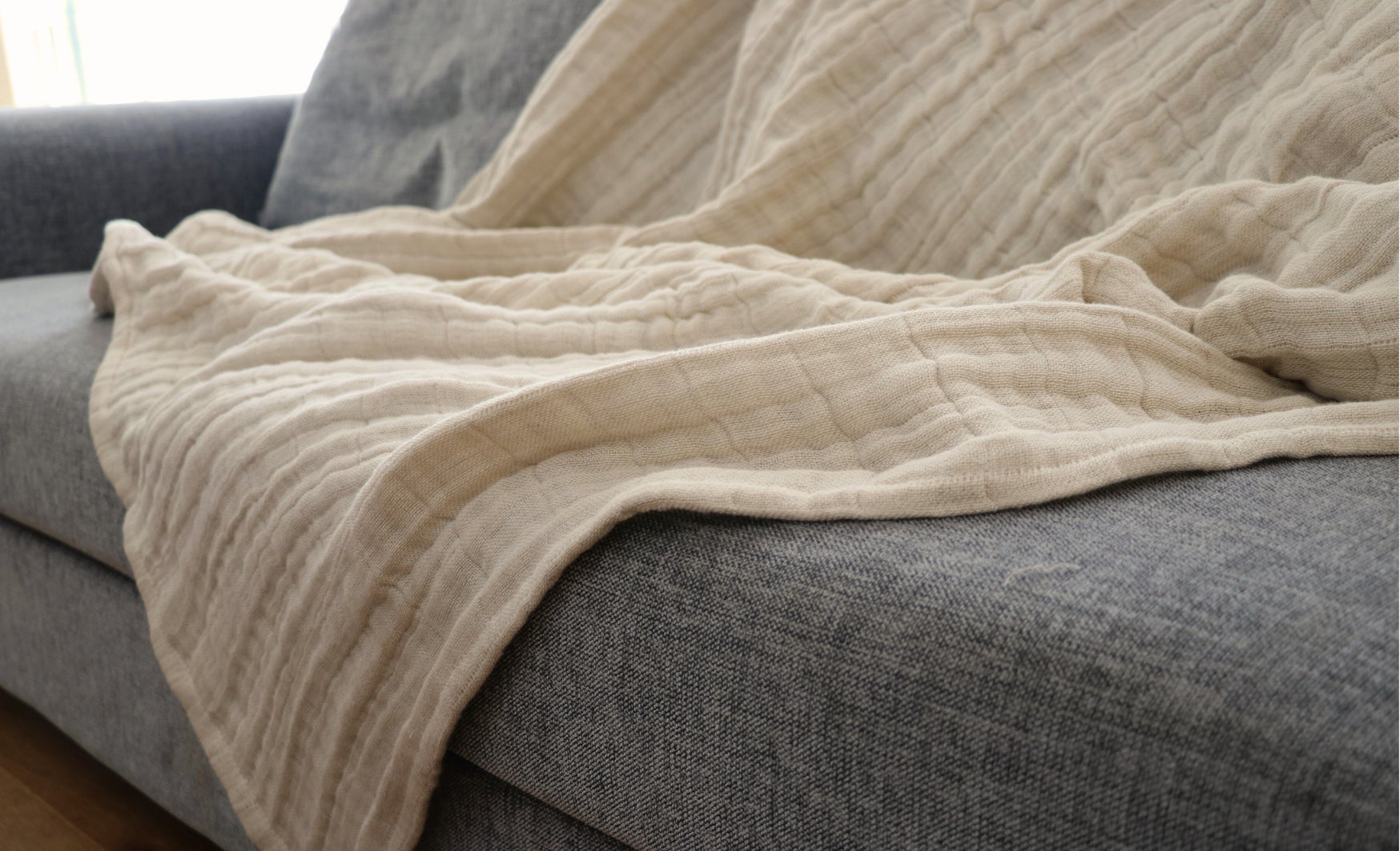 日本の伝統産業を応援したい!肌ざわりやわらかなコットンに爽やかなリネンをプラスした「大阪・泉州ケット」。GOTS認証のオーガニックコットンとヨーロッパリネンを織り交ぜた無添加ガーゼケットが発売。