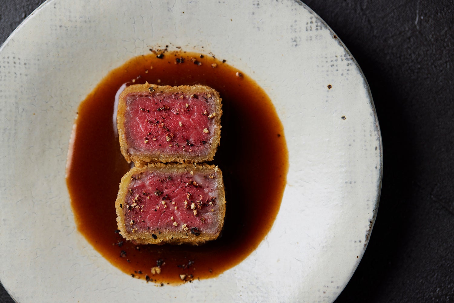 厚切りの石垣牛ヒレ肉をサクッと揚げた柔らかジューシーなヒレカツ。こだわりの自家製ウスターソースを合わせて。