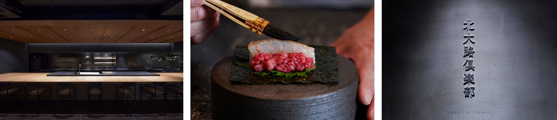 この度オープンする『北大路倶楽部』は、全室個室の『個室会席 北大路』とは趣を異にするカウンター10席のみのお店です。銀座の街に潜む秘密基地のような雰囲気漂うこの店は、季節ごとに料理内容も料理人もがらりと入れ替わります。