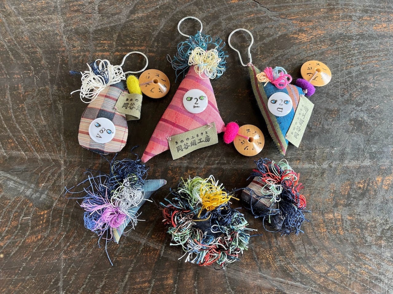 布と糸で不思議な生き物を創作するnuno*ito asobi 髙倉美保さんと絹工房の織り端、残り糸を使ってシルクのキーホルダー&ブローチを作ってみませんか。