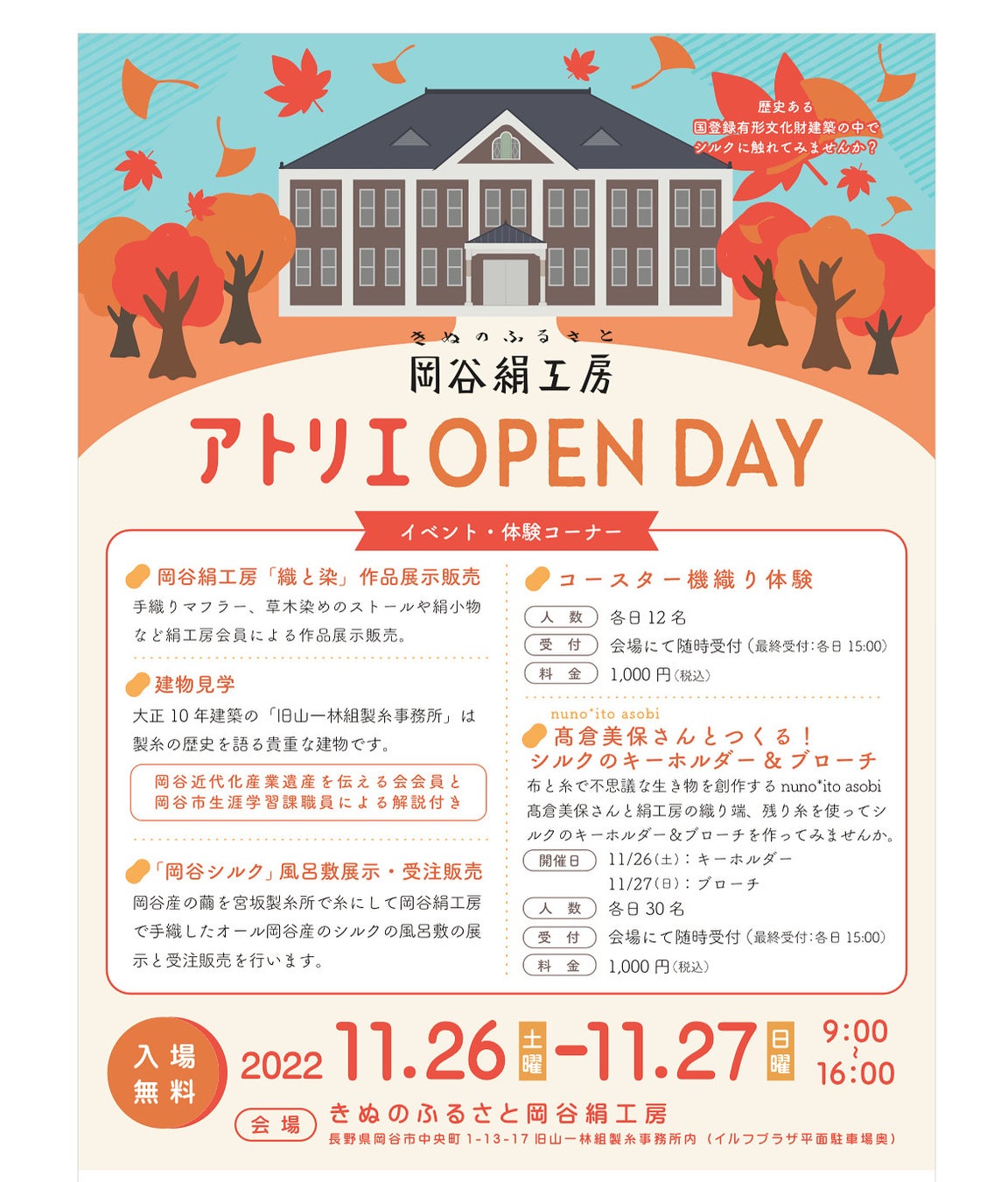 11/26(土)27(日)『岡谷絹工房アトリエOPEN DAY』開催オール岡谷産「岡谷シルク」風呂敷も展示