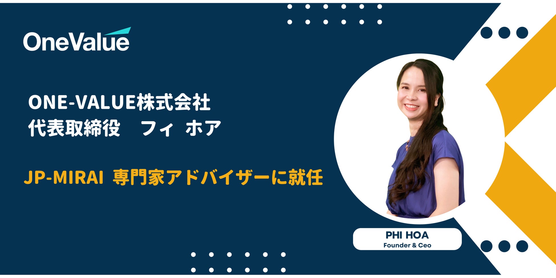 ベトナムに特化した経営コンサルティング企業であるONE-VALUE株式会社(東京都江東区)の代表取締役フィ ホア(PHI HOA)が、2022年12月9日(金)より、JICAが主催する「責任ある外国人労働者受入れプラットフォーム JP-MIRAI」の専門家アドバイザーに就任しました。