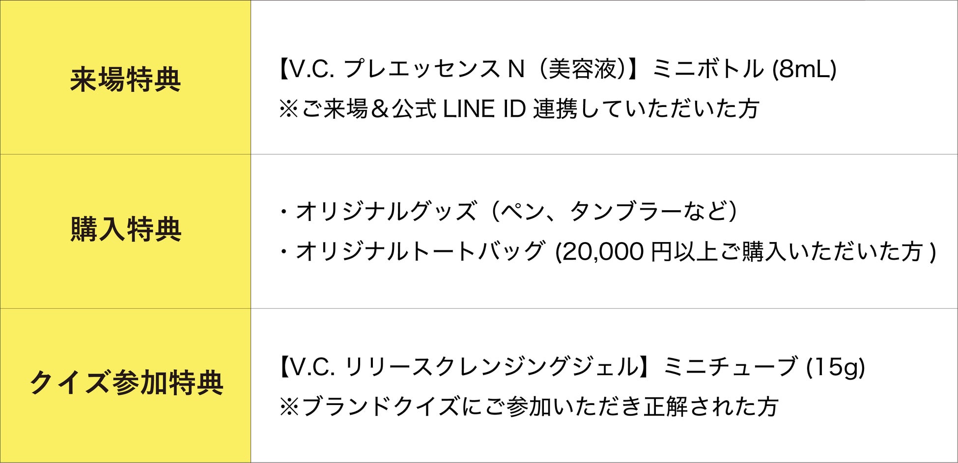 ■「V.C.プレエッセンス N」ミニボトルがもらえる来場特典や、購入特典も多数ご用意!