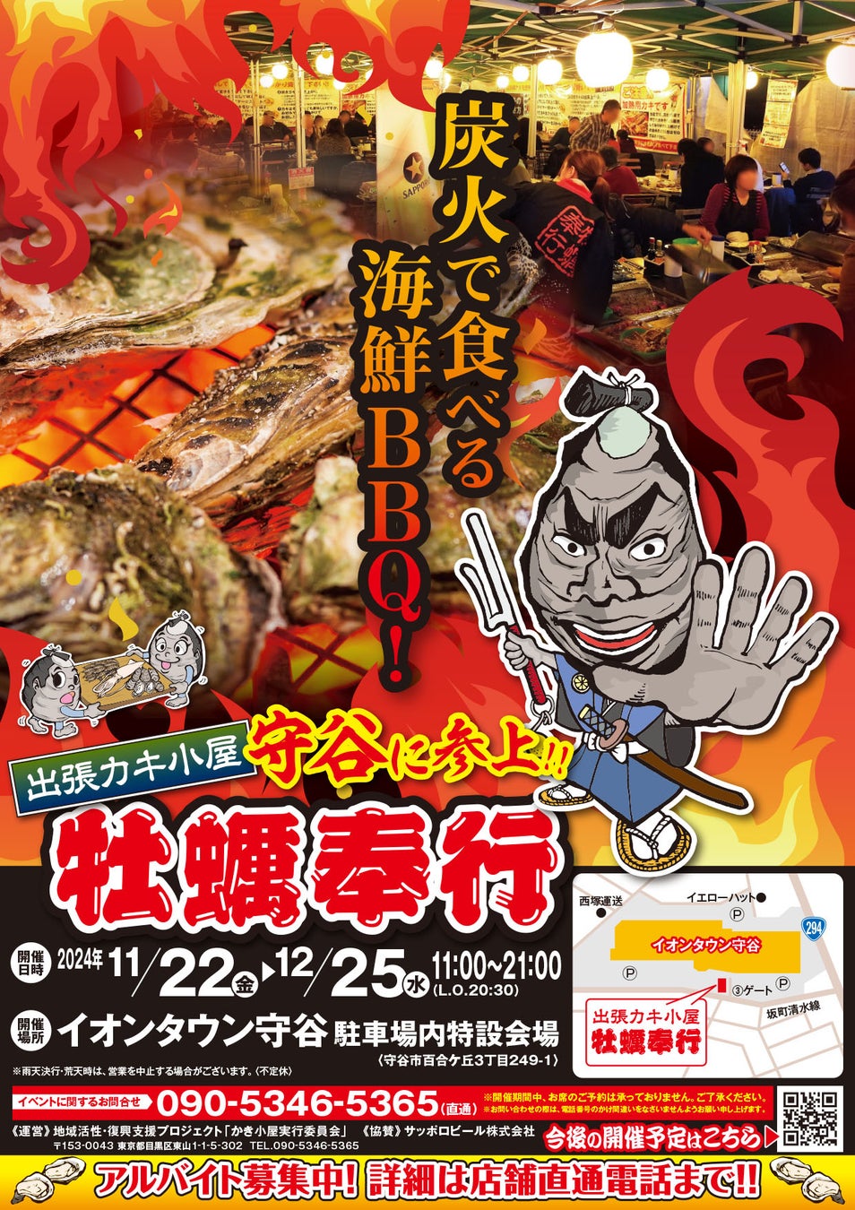 「守谷に牡蠣奉行がやってきた!」出張かき小屋が茨城県守谷市に出店「地域活性・東北復興支援プロジェクト 出張カキ小屋 牡蠣奉行」がイオンタウン守谷 駐車場特設会場で短期出店(11/22-12/25)