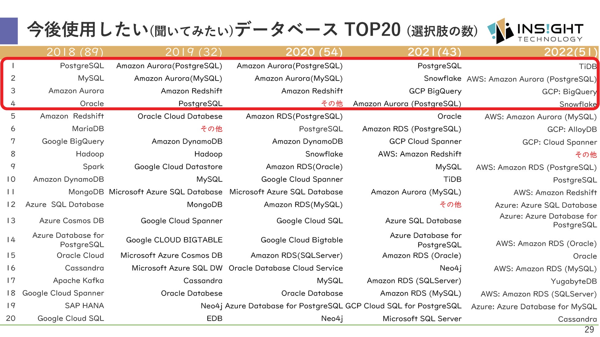 NewSQLのTiDB、「今後使用したいデータベース」でNo.1を獲得