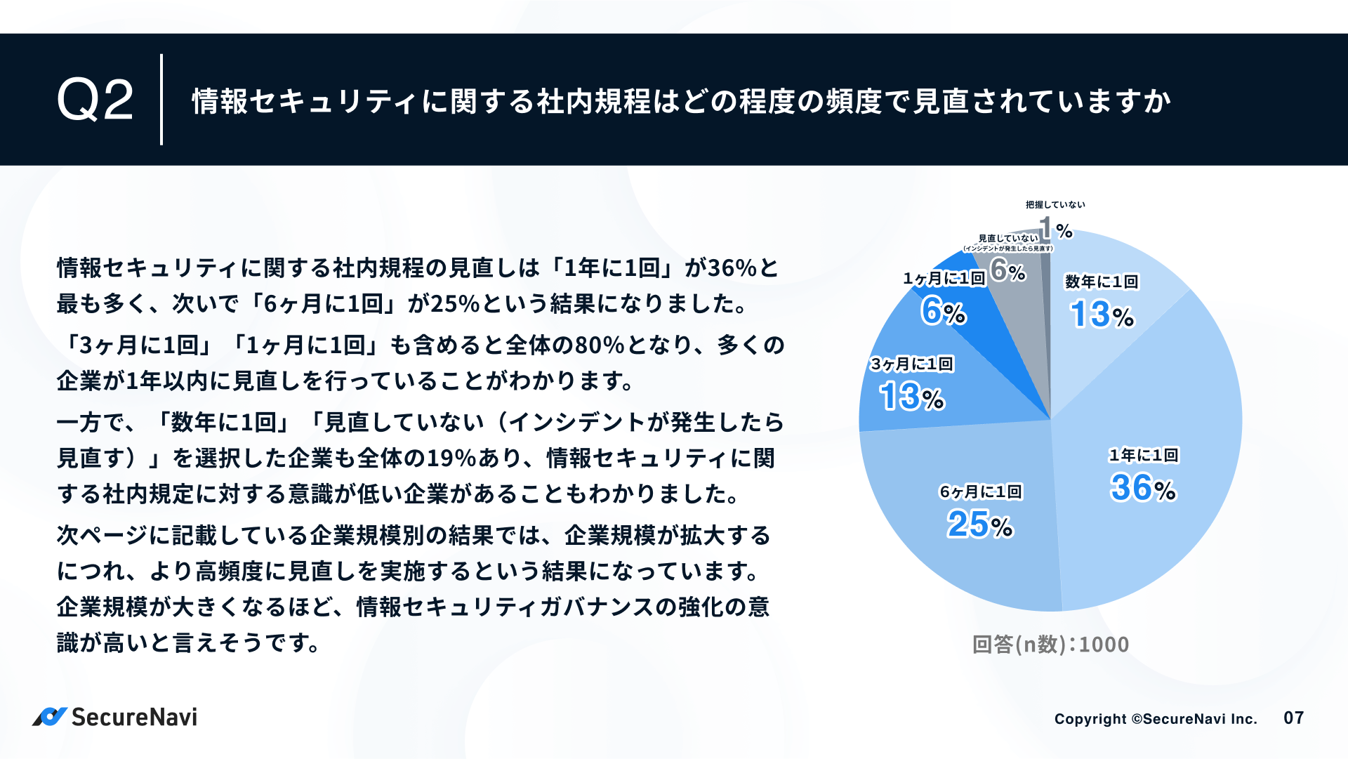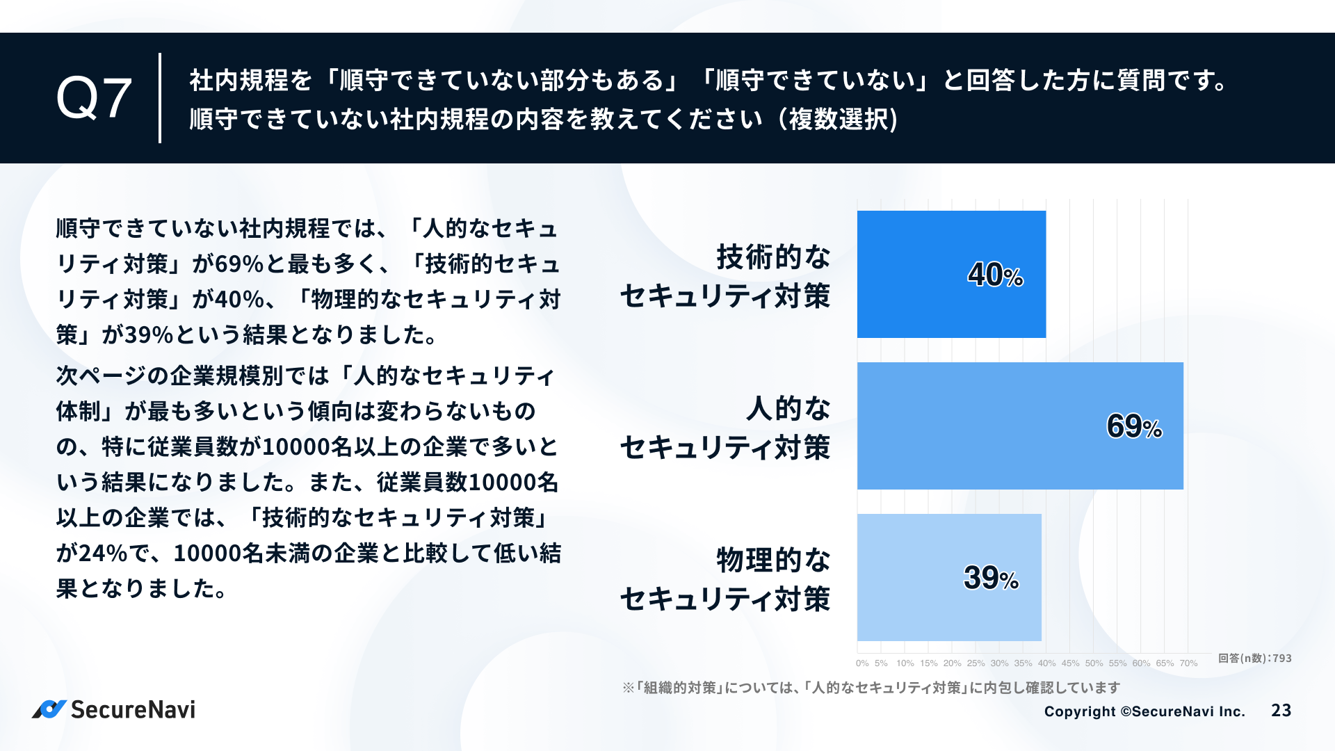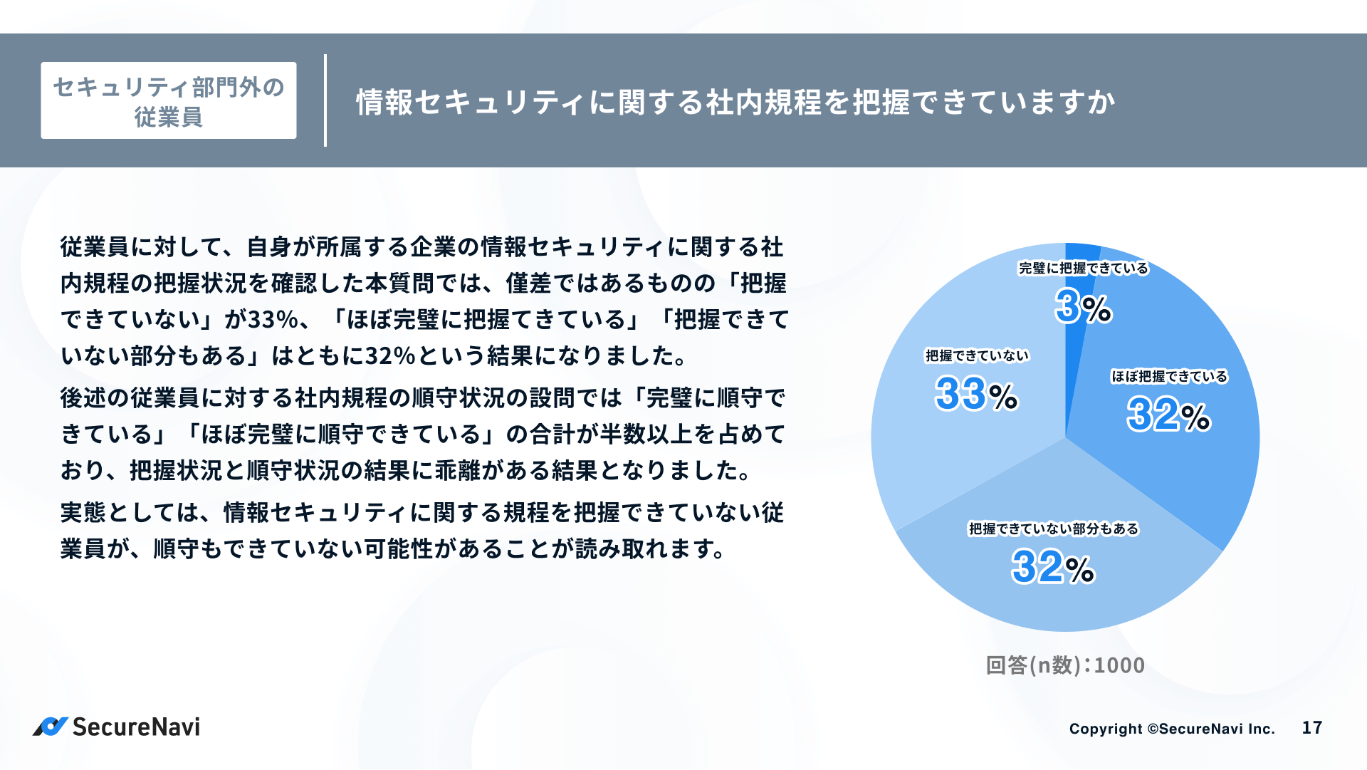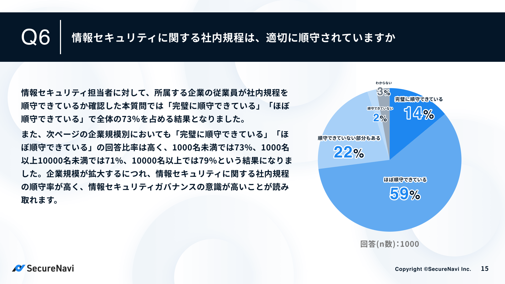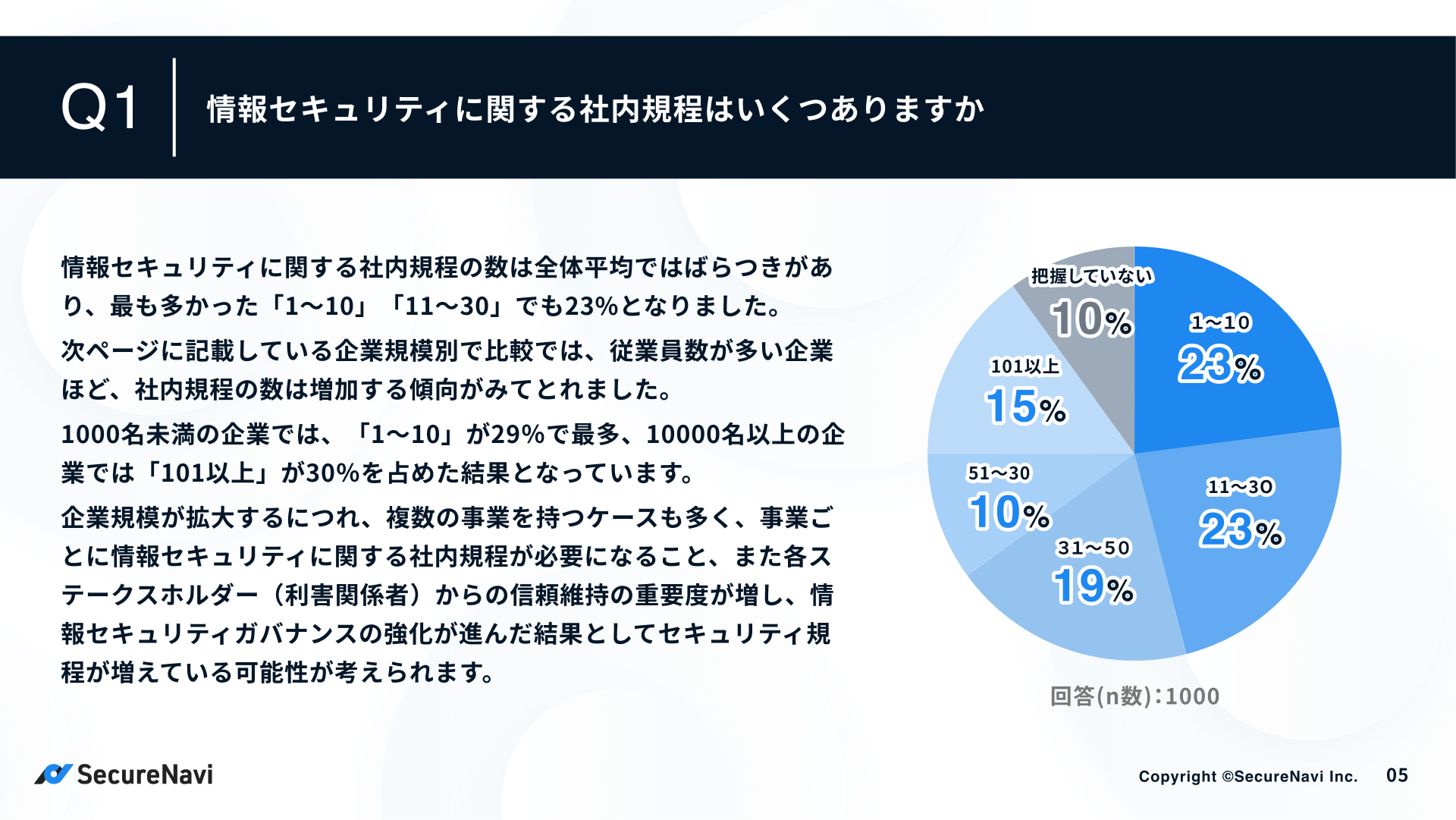 ISMS・Pマークオートメーションツール「SecureNavi」を提供するSecureNavi株式会社(本社:東京都中央区、代表取締役:井崎友博、以下当社)は、企業の情報セキュリティ規程に関する調査を実施し、「中堅・大手企業の情報セキュリティ規程に関する調査レポート」を公開しました。