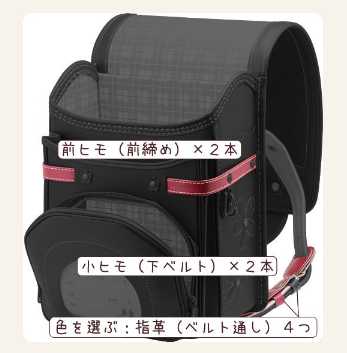 イベントではランドセルの前ヒモ(前締ベルト)、小ヒモ(下ベルト)