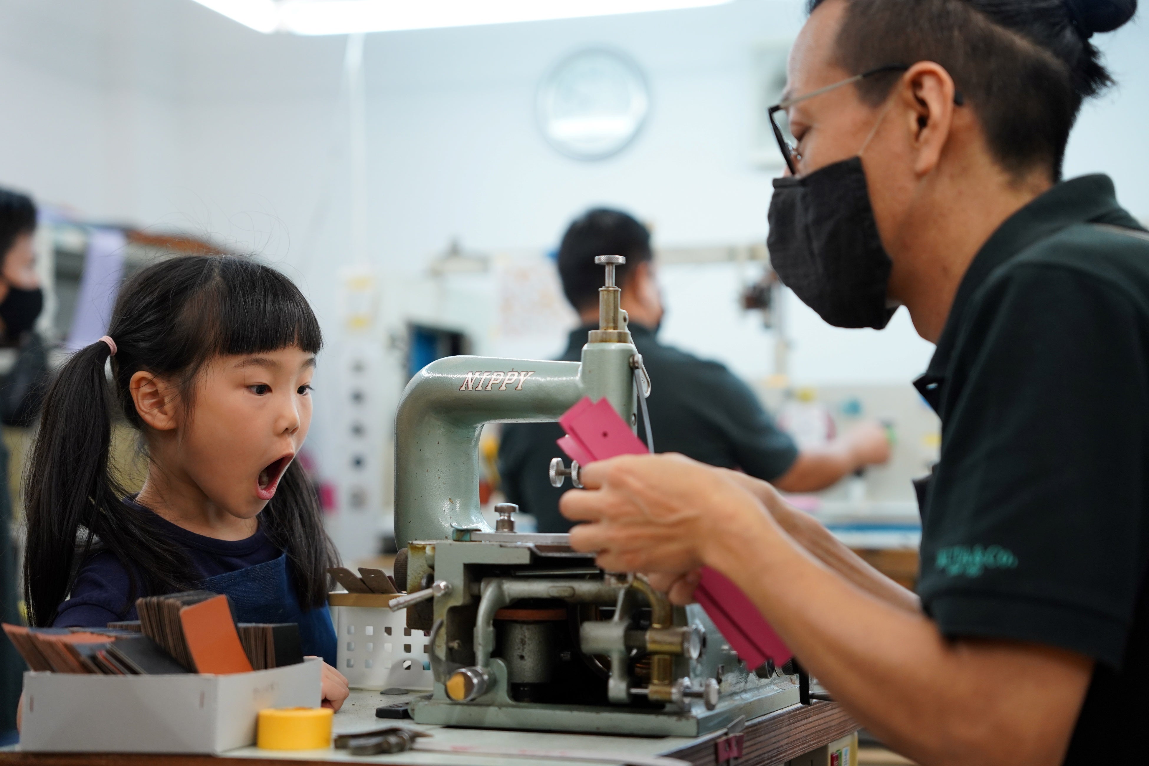 実際にランドセルを製造している工房で、職人たちと一緒に、普段職人が使っている道具や機械を使って、自分が使うランドセルの一部を作ることができる、当社のみでしか体験できないイベントです。