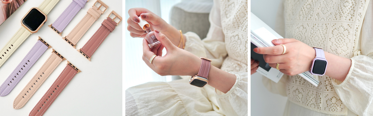 ②「ただまっすぐに」PUレザーアップルウォッチバンド 各 2,980円(税込)