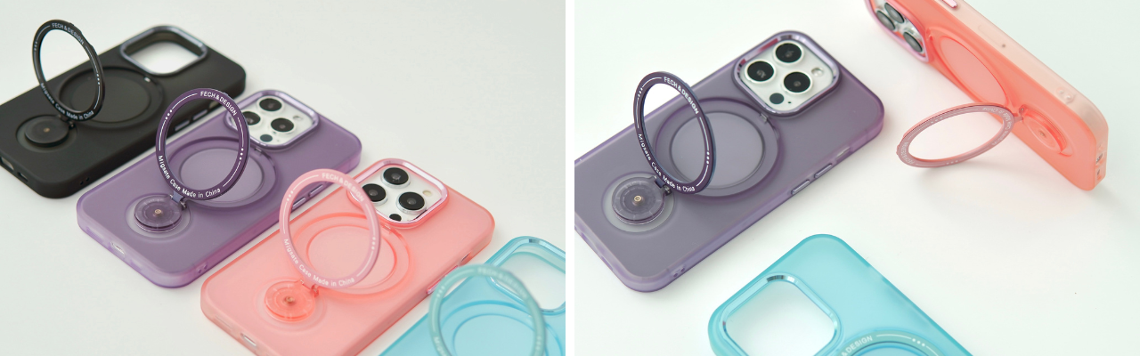 ④「いつでもひとつに」リング付きスマホケース 各 2,980円(税込)