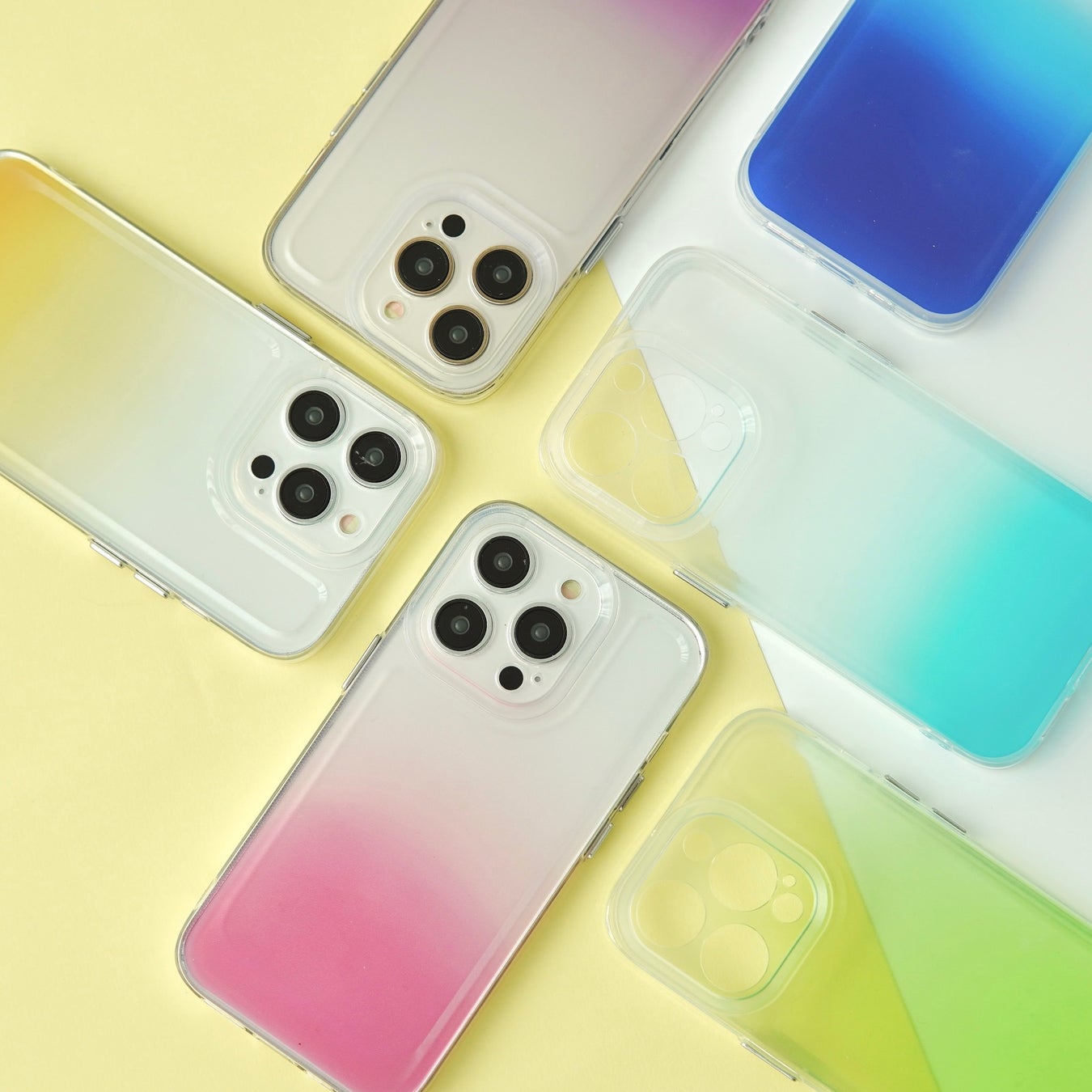 クリアベースに色彩のグラデーションが映えるシンプルケースです。本体の色によって異なる雰囲気を楽しめます。オシャレな透け感は涼しげで、これからの季節にもぴったりです。