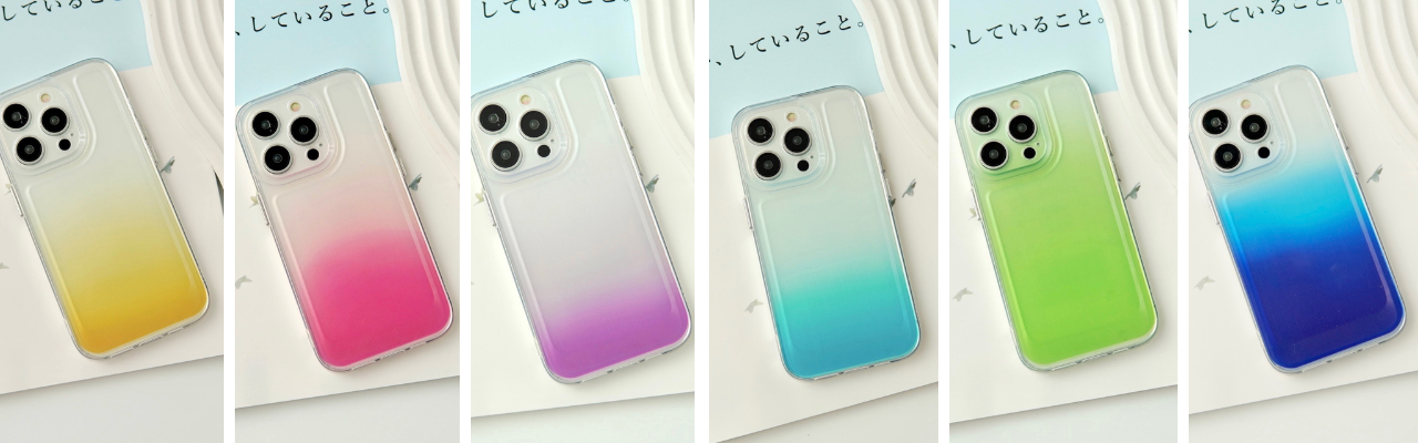 ③「染まりゆく」グラデーションクリアケース 各1,980円(税込)