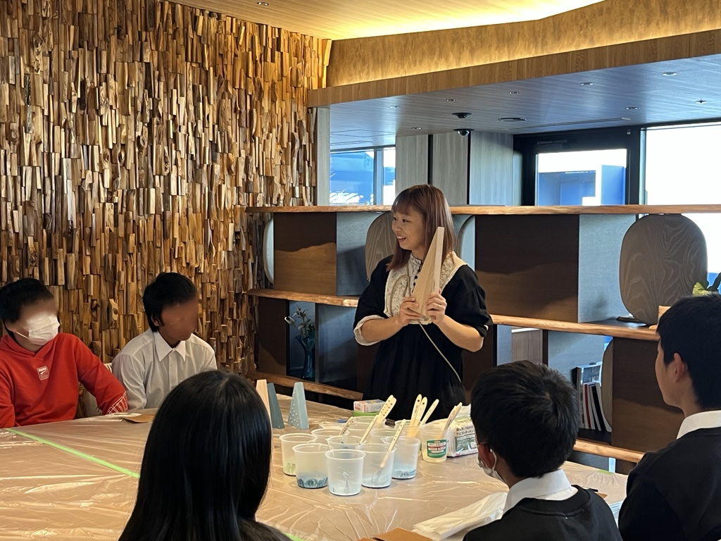 地元の軽井沢学園の子どもたちが間伐材のツリーオブジェ作りに挑戦!