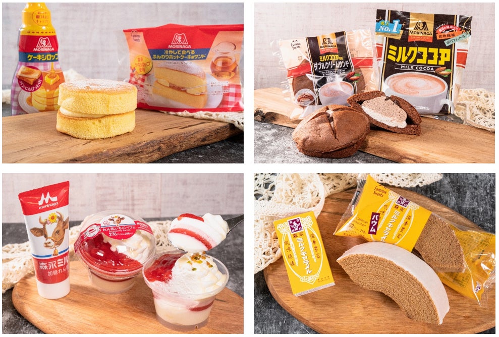 このたび「バター香るホットケーキまん」の販売好調をうけ、森永製菓・森永乳業のロングセラー商品である、森永製菓の「森永ホットケーキミックス」「森永ミルクココア」「森永ミルクキャラメル」、森永乳業の「森永ミルク加糖れん乳」をイメージしたスイーツ4商品を、6月13日(火)から順次発売いたします。