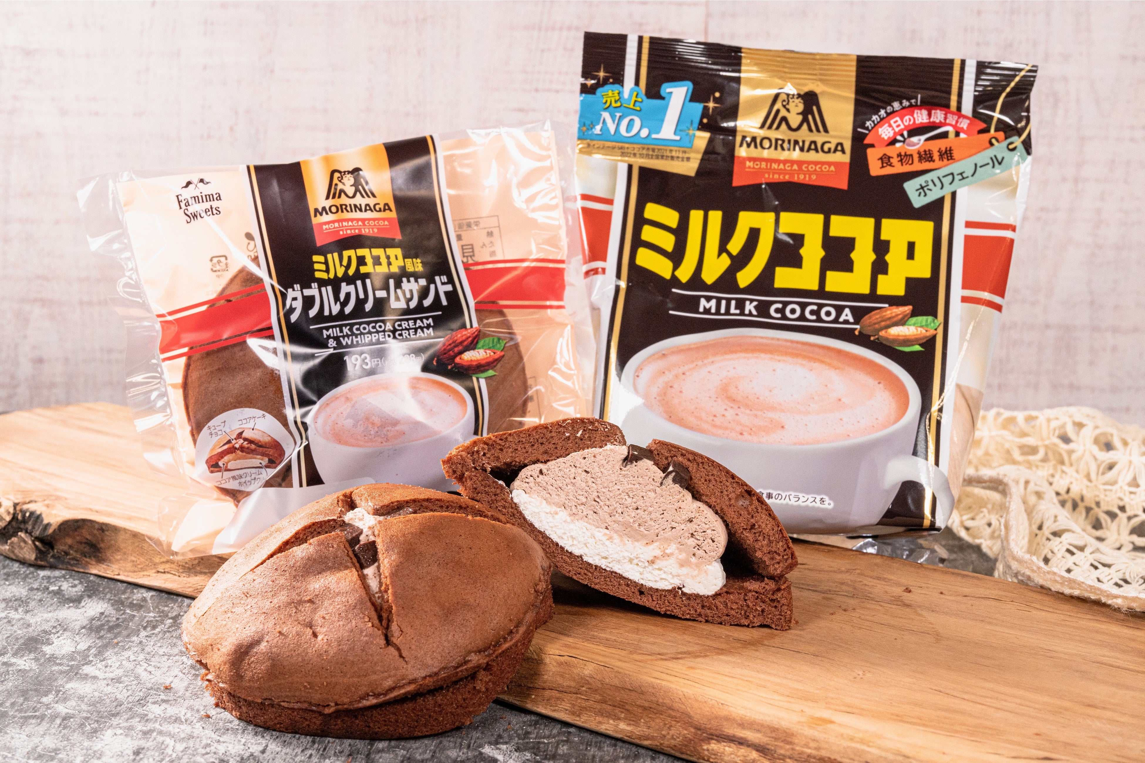 100年以上の歴史を持つ「森永ミルクココア」と、ファミマスイーツで人気のダブルクリームサンドとの夢のコラボが実現しました。カカオ感とミルク感の絶妙なバランスをぜひご賞味ください。