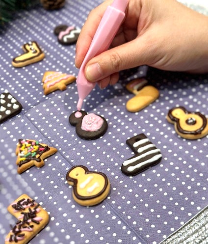 「クリスマスビスケット」は、ツリー、ブーツ、スノーバディの3つのクリスマス柄のかわいらしいシェイプで、ケーキやカップケーキなどのスイーツのデコレーションになるだけでなく、ビスケットの穴に糸を通すとツリーなどに飾ることができ、クリスマスの楽しみ方が広がるビスケットです。