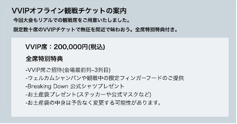 VVIP*オフライン観戦チケット 200,000円 (VVIP=Very Very Important Person)