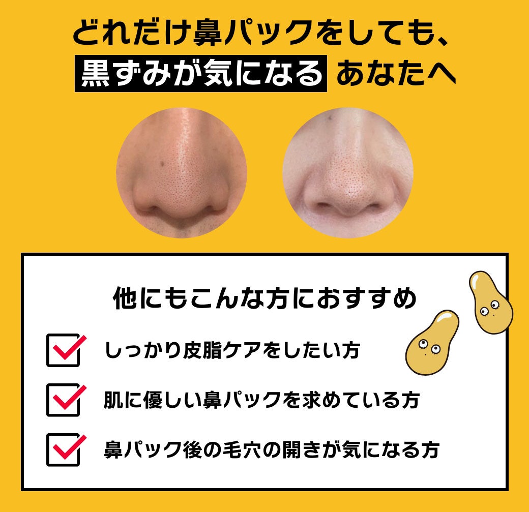 また、鼻の隅々までいきわたるシートデザインや、吸着力(※1)、そしてパックをはがした後の肌の引き締めといたわり(※2)にこだわりを詰め、これまで100種類以上の毛穴関連商品を試しSNS上でレビューしてきた「やみちゃん」だからこそ開発できた商品となっています。