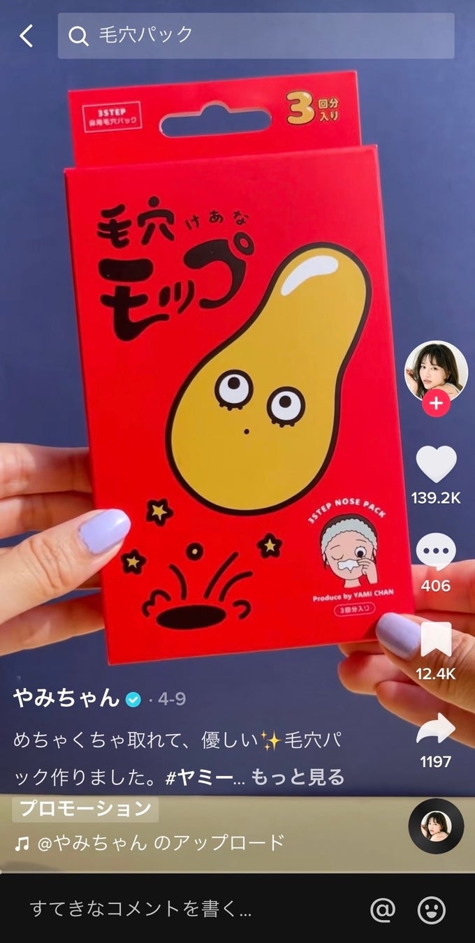 TikTok売れの第一人者・美容系クリエイター“やみちゃん”が本気で作った商品 3STEP鼻用毛穴パック『毛穴モップ』 想像をはるかに超え“爆売れ中”!某ECモールにてデイリーランキング1位を連発