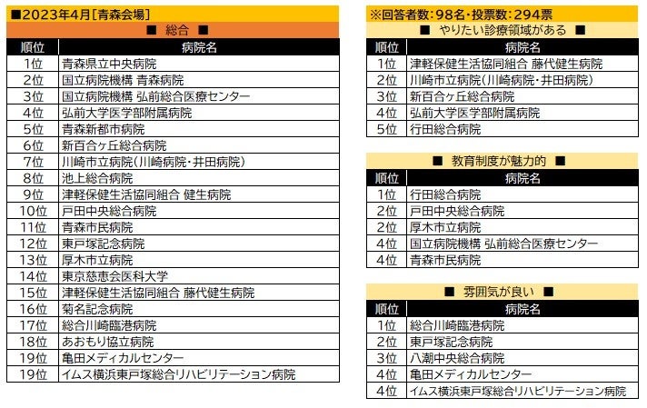 【青森版】の総合トップは青森県立病院。精神科の藤代健生病院が「やりたい診療領域がある」の首位となった