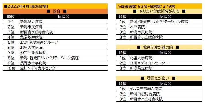 【新潟版】の総合トップは新潟県立病院。「やりたい診療領域がある」のトップは、介護・訪問看護等の併設施設があるリハビリテーションの新潟・新発田リハビリテーション病院