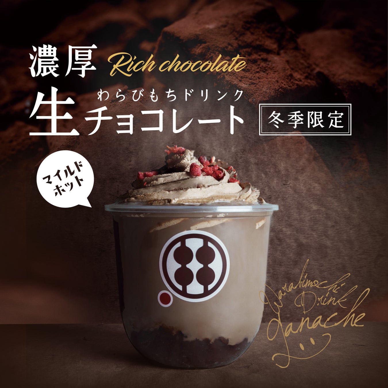 感動生チョコわらびもち!甘味処鎌倉 冬季限定『わらびもちドリンク 濃厚生チョコレート』が今年も登場!生チョコの濃厚で極上の味わいにわらびもちが感動的にとろけあう。