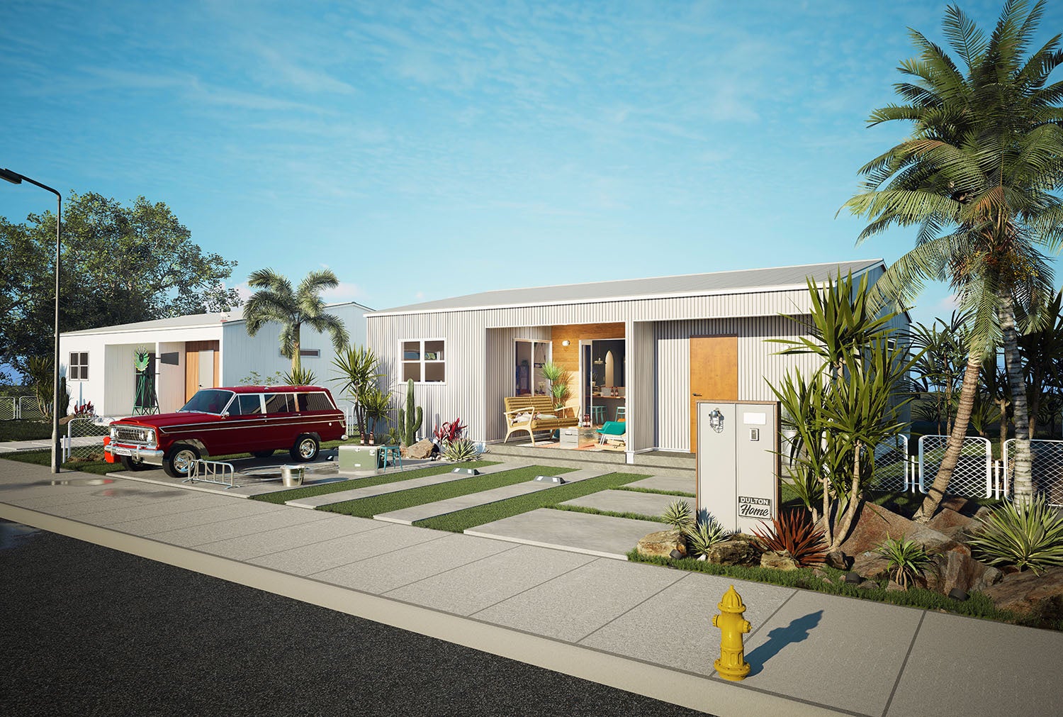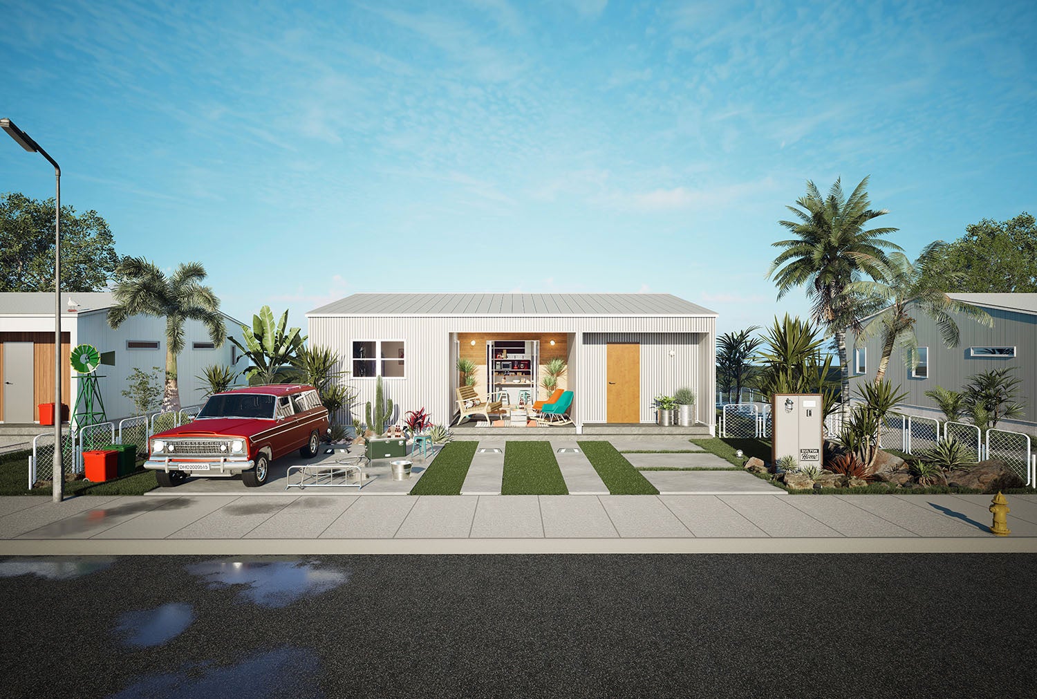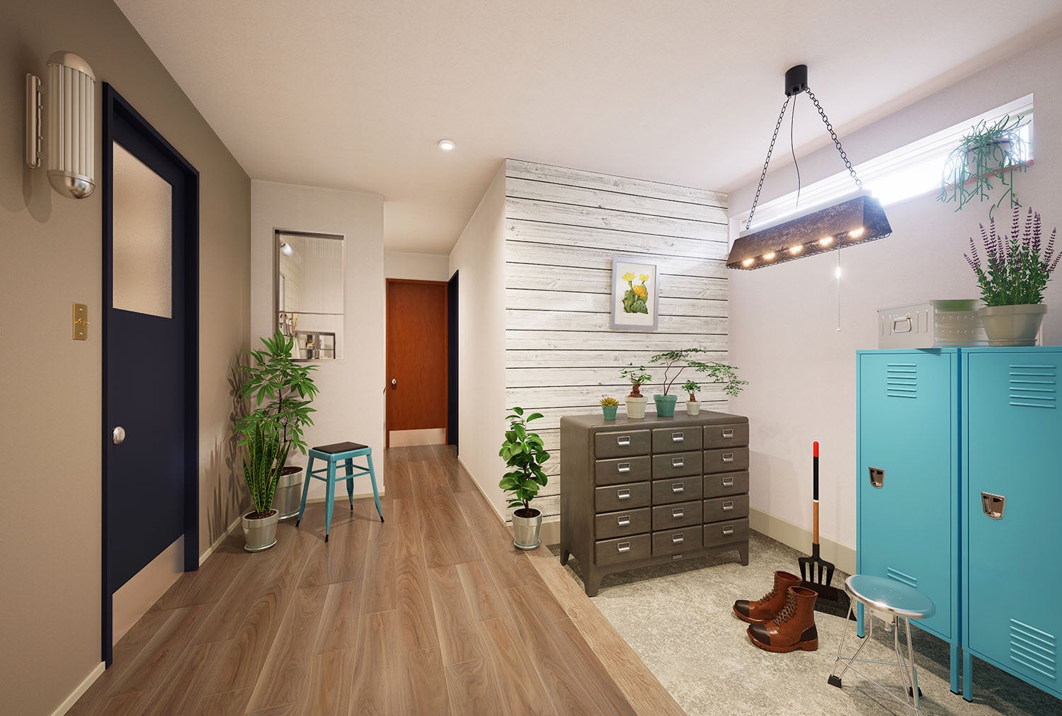 DULTON HOME初の平屋商品となり、第二のリビングとして使用できる半屋外のポーチや広々とした土間、多様性のあるカウンターなど細部にまで拘り、住む人それぞれのライフスタイルをDULTONアイテムと共に楽しんでいただけるプランとなっています。