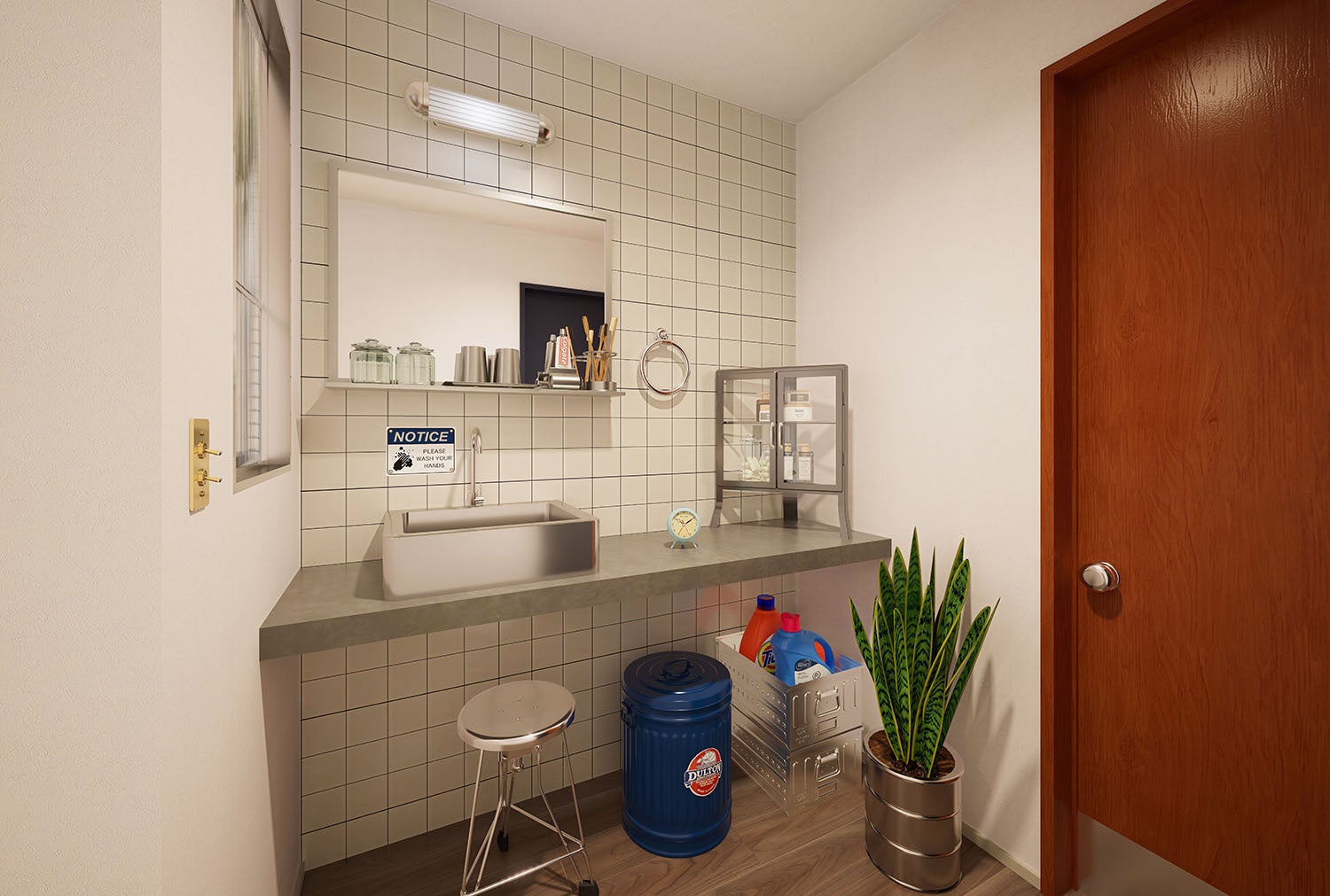 モルタル塗りの造作カウンターでつくられた洗面台。