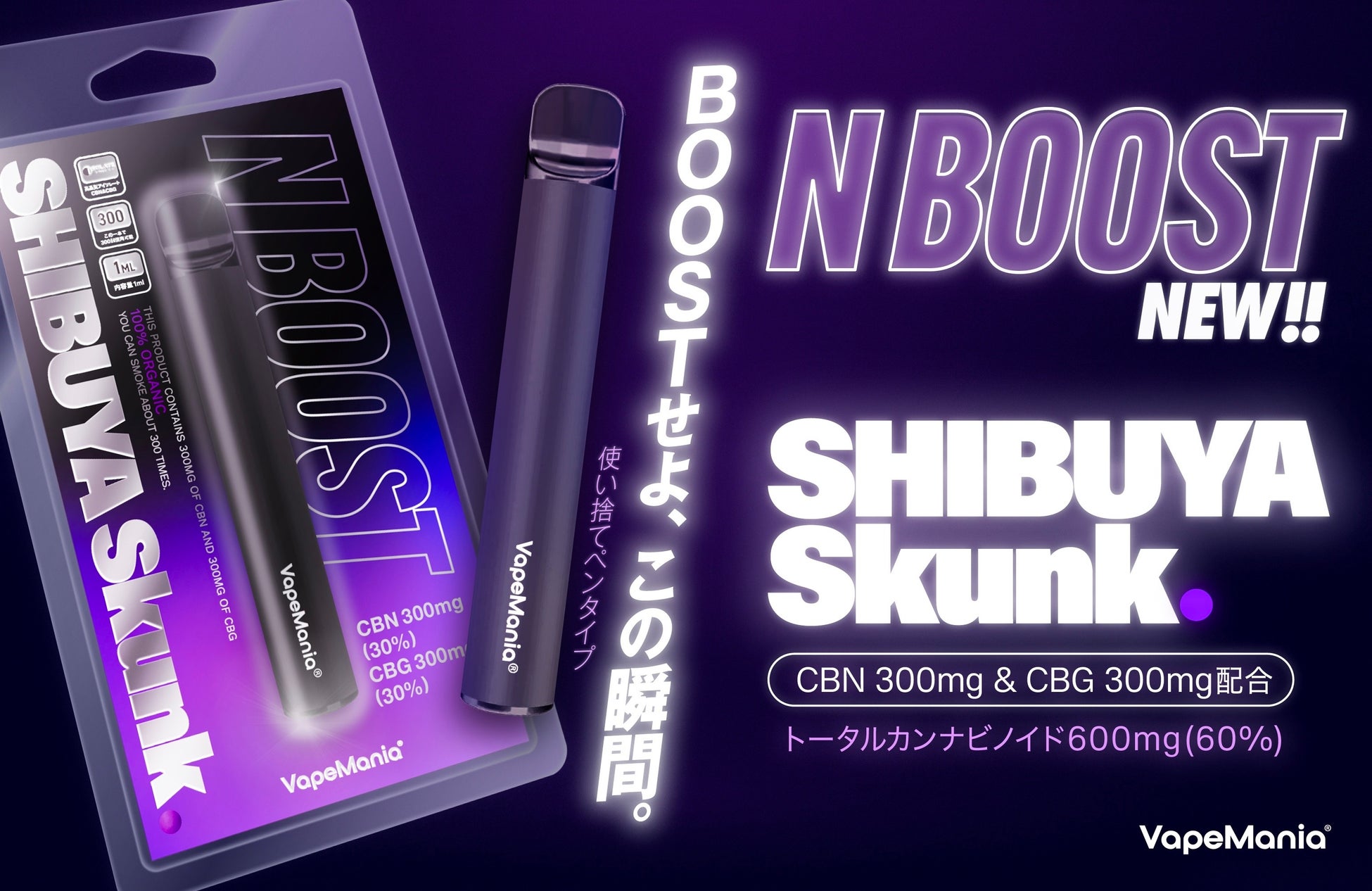 新しいディスポーザブルVape「N BOOST SHIBUYA Skunk(エヌブースト シブヤスカンク)」を販売開始いたします。