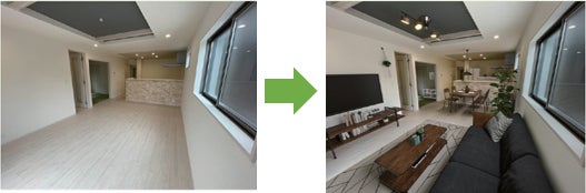 工務店様が自社の住まいづくりをより伝えやすいよう、自社の建築事例の画像に、家具や家電などをCG加工で追加し、リアリティのある空間イメージをご提供します。