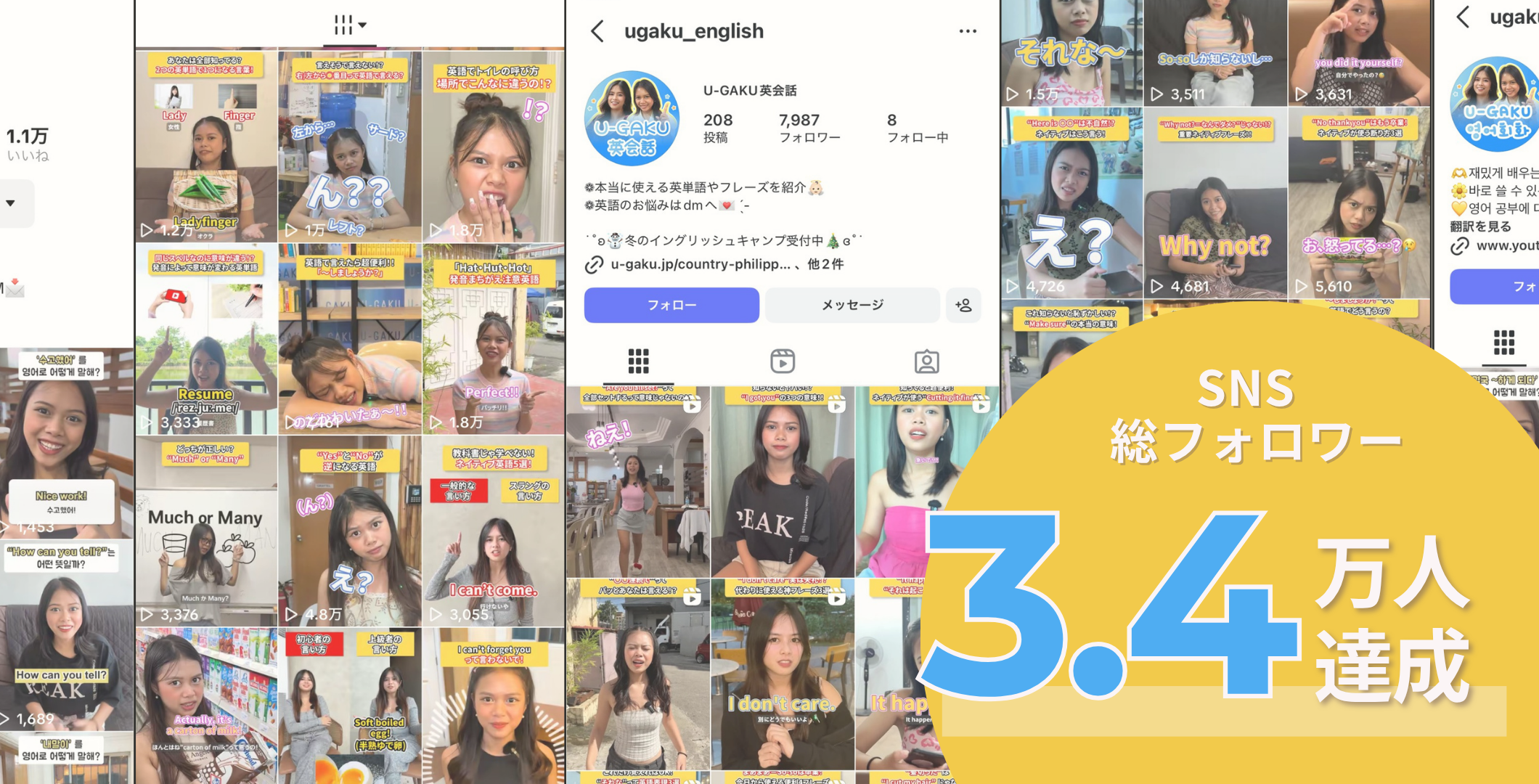 U-GAKU運営、フィリピン現地発の英会話アカウント「U-GAKU英会話」、総フォロワー3.4万人突破