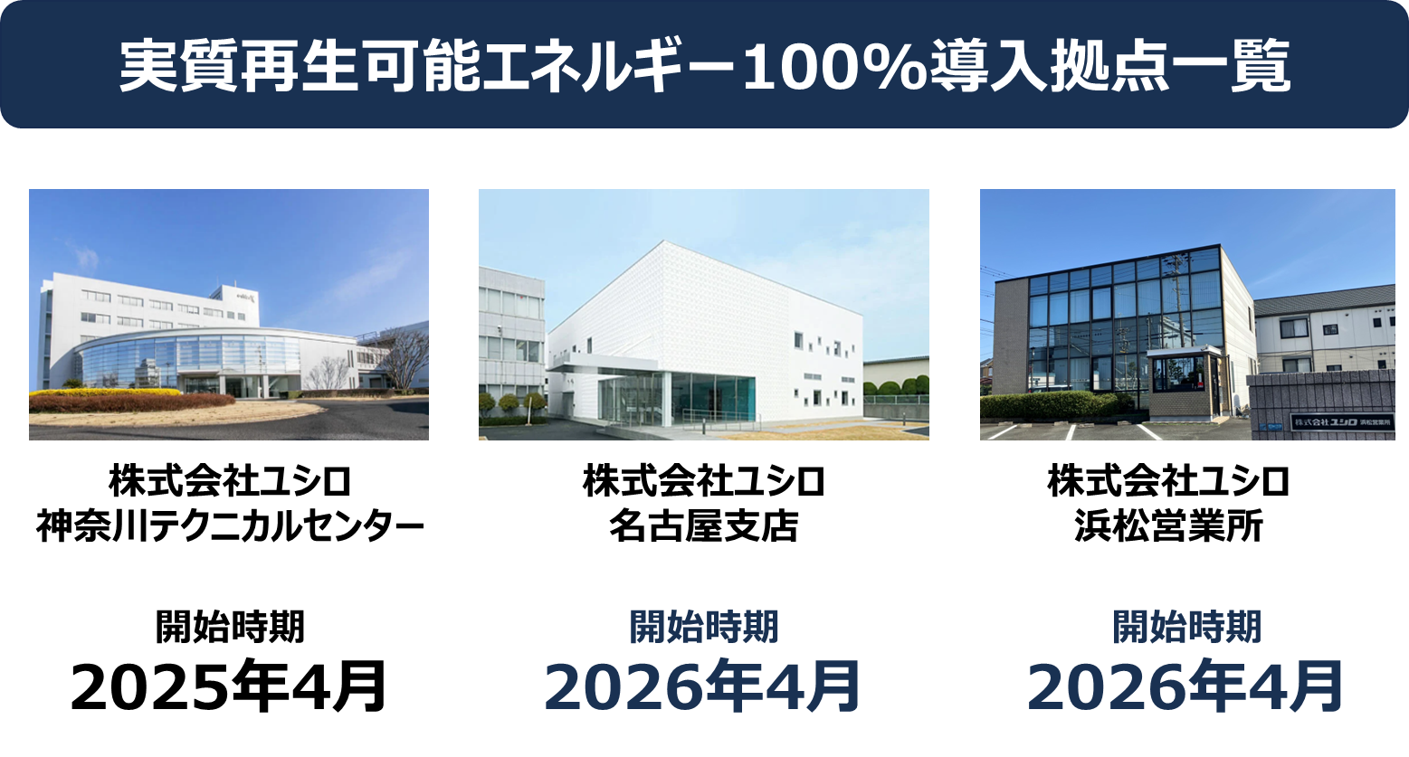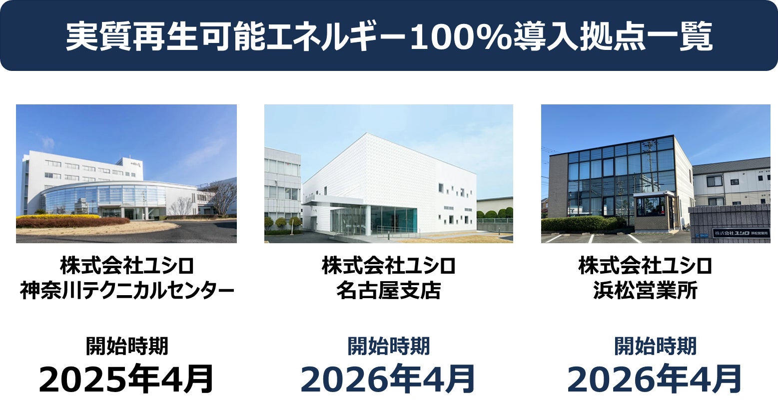 株式会社ユシロ(本社:東京都大田区、代表取締役社長:有坂昌規、以下、ユシロ)は、2026年4月から当社の名古屋支店および浜松営業所において、エネルギー・住まい・暮らしの総合サービス事業を提供するシナネンホールディングス株式会社(本社:東京都品川区、代表取締役 社長執行役員:中込 太郎)の子会社で、エネルギーソリューションを提供するシナネン株式会社(本社:東京都品川区、代表取締役社長:中川 進弘)が供給する実質再生可能エネルギー比率100%の電力の使用を開始いたします。