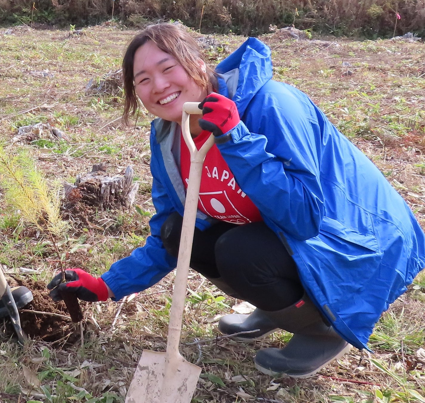 今回初めてアスリートとして参加しました。三井不動産の皆さまと一緒に植林という貴重な体験をし、昨年植えたものが成長していく様子等も知ることができ、とても良かったです。