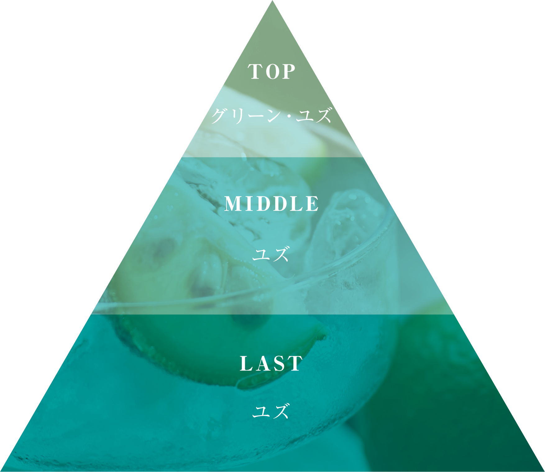 完熟し黄色くなる前の、まだ青い柚子は香りが強くさっぱりと爽やかな雰囲気が特徴的です。 まるで青柚子をしぼったような、そんなリアルな香りにこだわりました。