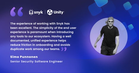 なお、ゲーム業界においては、Unity や Sky Betting & Gaming においてSnykをご採用いただいています。下記はUnityのシニアセキュリティソフトウェアエンジニアのシモ・プンノネン(Simo Punnonen)様からのコメントです。