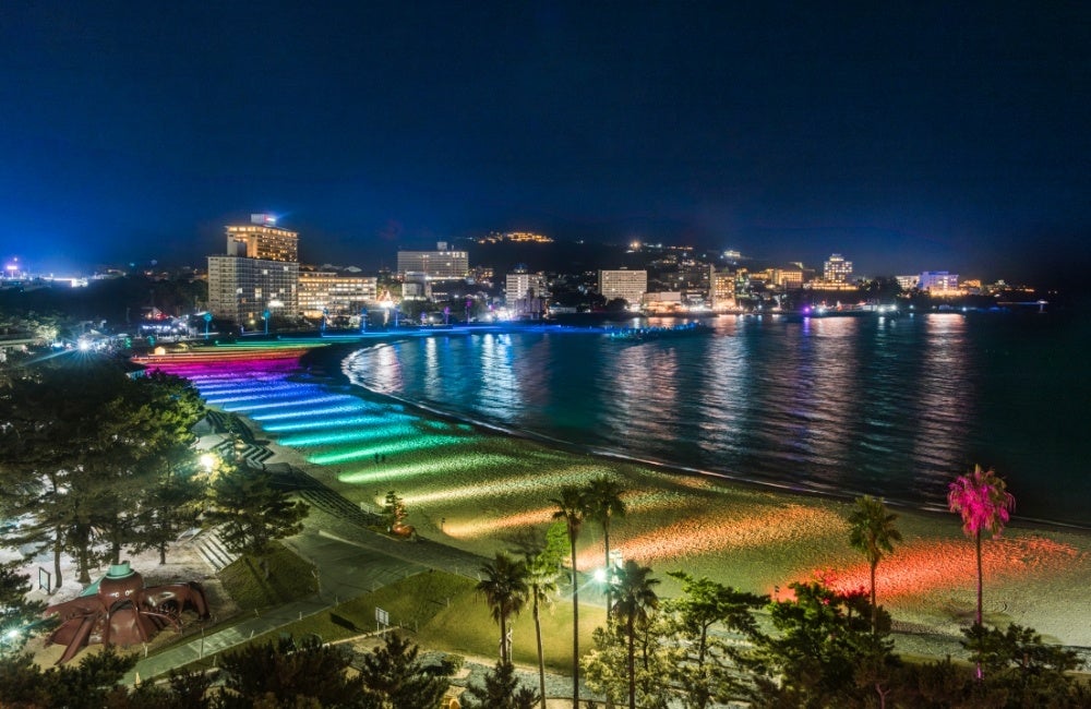延長620mの白良浜を、音楽に合わせた光で大規模にライトアップ