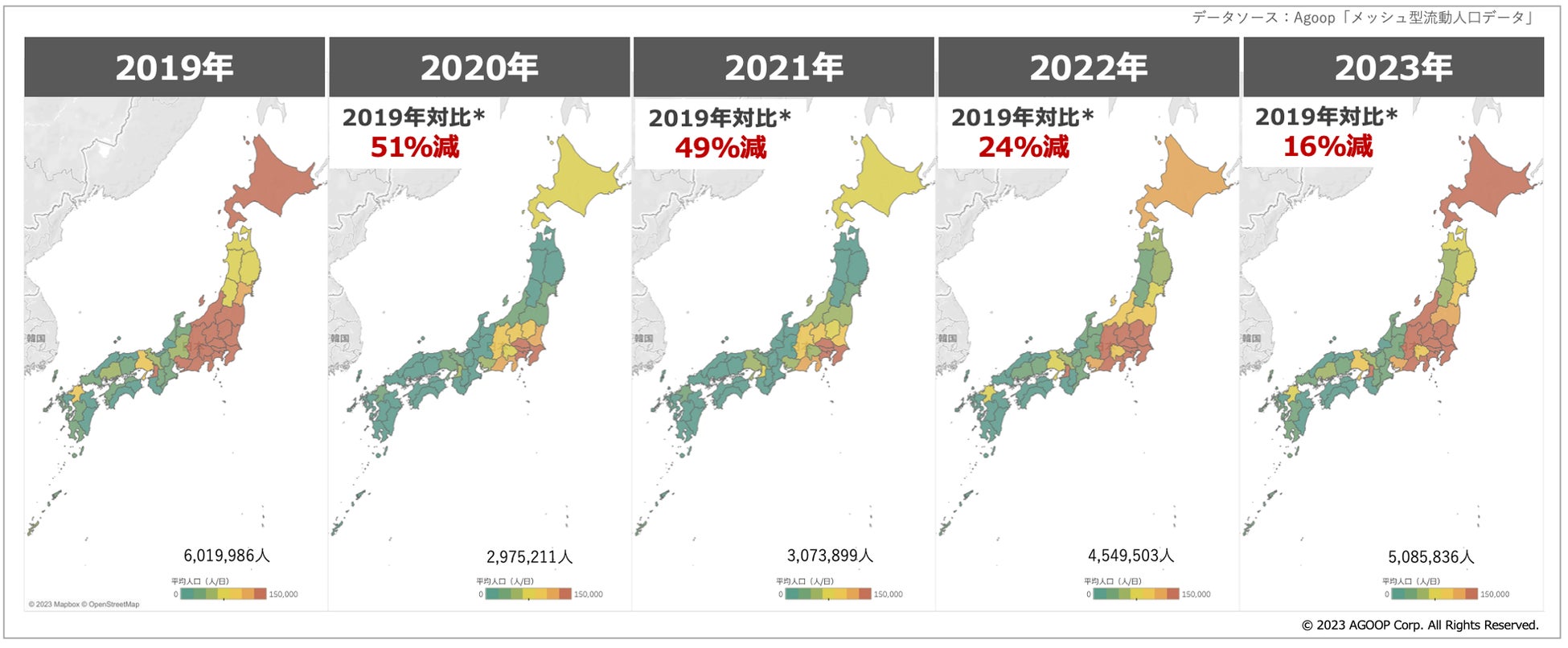 2022年まではコロナが要因で移動量に変化をもたらしていました。