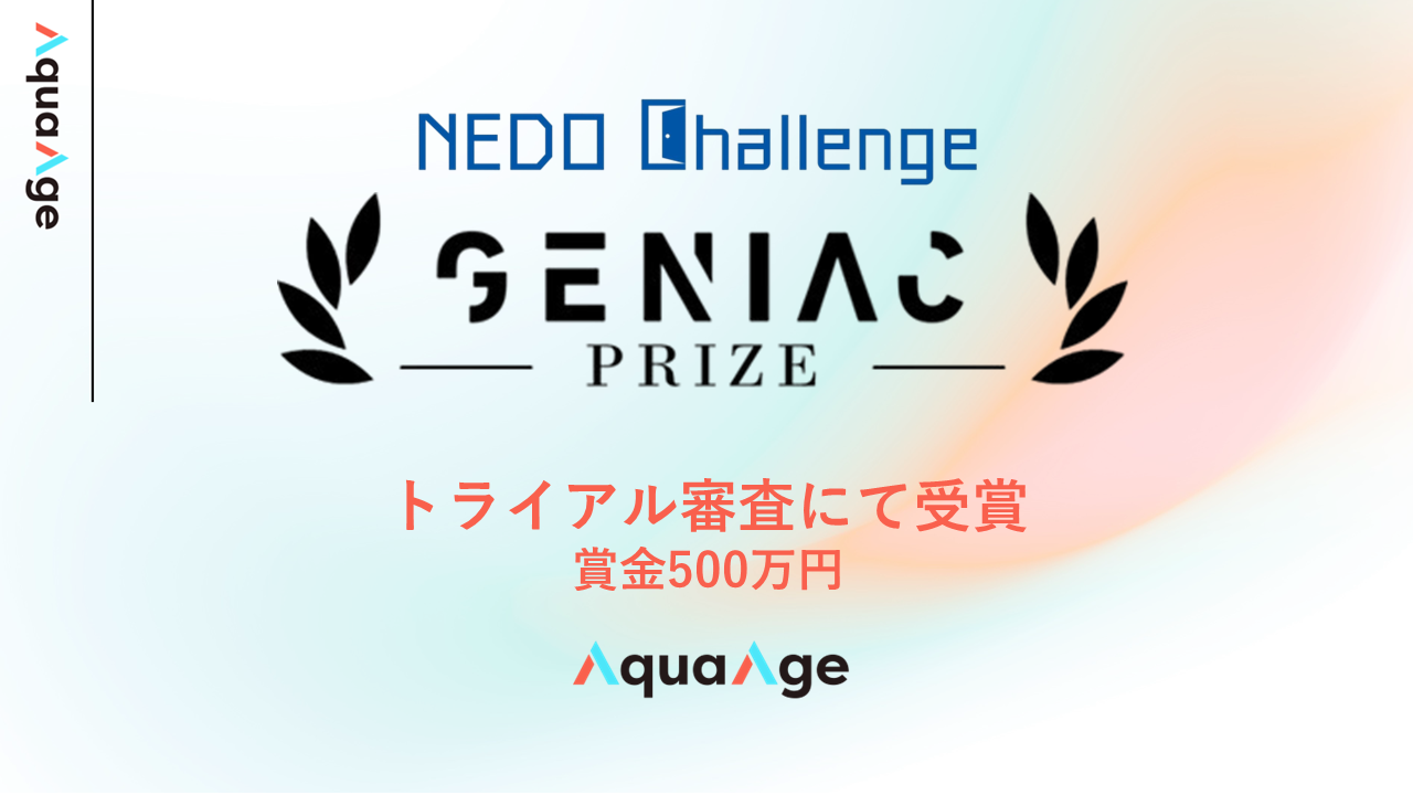 AquaAge株式会社(本社:愛知県名古屋市、代表取締役社長:石 蔡峰、以下:AquaAge)は、国立研究開発法人 新エネルギー・産業技術総合開発機構(NEDO)が実施する懸賞金活用型プログラム「GENIAC-PRIZE」において、67件の応募の中から8件の受賞プロジェクトの一つに採択され、賞金500万円を獲得したことをお知らせいたします。